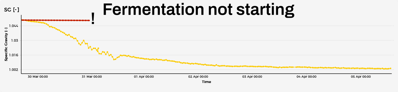 But if something goes wrong during fermentation, you want to act quickly. Here are some examples of issues that you can detect during primary fermentation, when using a Float Pro. The examples won’t cover everything, but hopefully they will help you interpret the data in your graph.