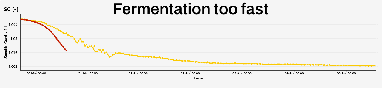 - Overpitching yeast; because there was too much yeast in the lag phase, converting sugars started early. Cooling the fermentation slightly can reduce fermentation speed